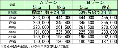 基本給は原則として「年齢給」「勤続給」を廃止します。従来型の「給与表」による体系化、あるいは、「ゾーン型給与表」による制度設計を行います。