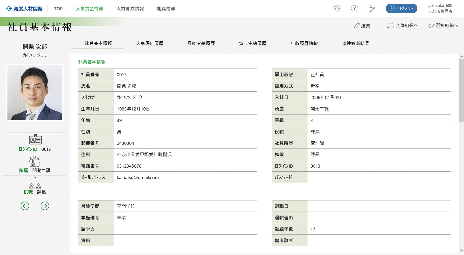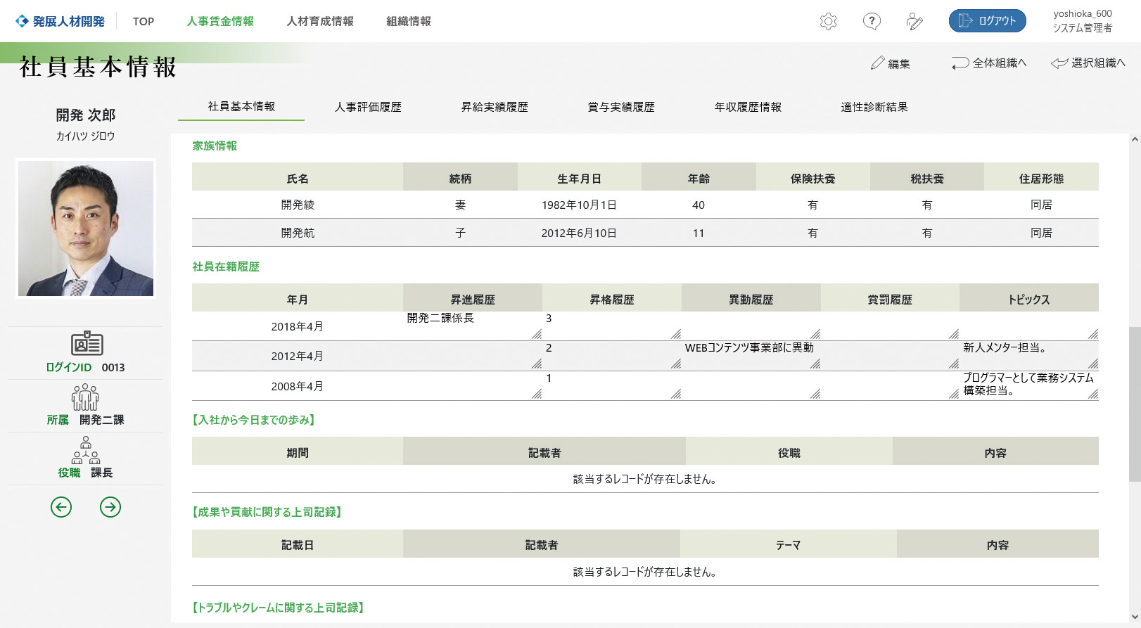 「人事賃金情報」は、社員の基本情報、社員の入社後の異動・貢献の履歴、給与、賞与、人事評価など処遇の履歴、適性診断の結果など、過去情報、定量的情報の把握ができるカテゴリーです。