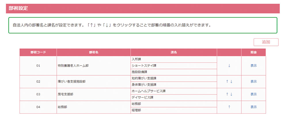 法人内の本部・拠点施設・事業所ごとに評価項目を改定できます。