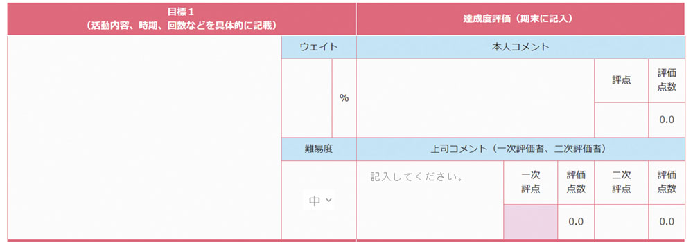 目標には重要度の高いものとそれほど高くないものが挙げられる可能性があります。上司と部下が話し合って評価ウェイトを個別設定することができます。