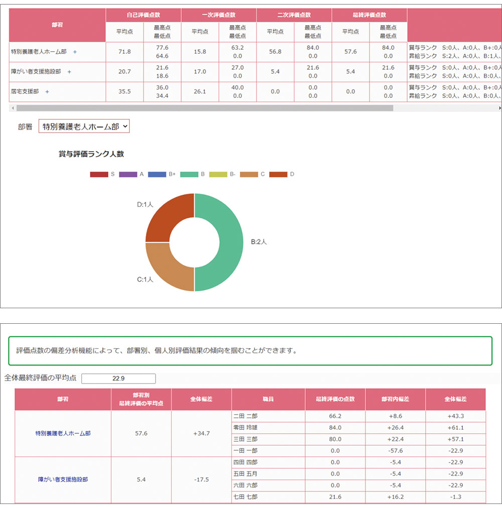 評価結果を全体、事業所で自動分析
