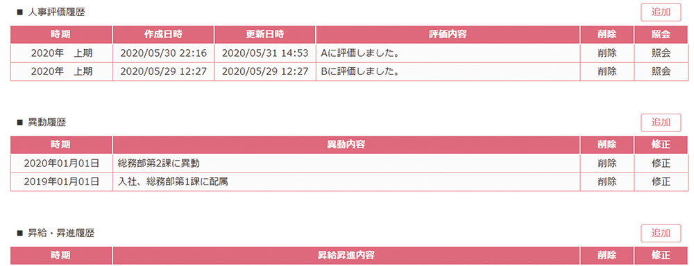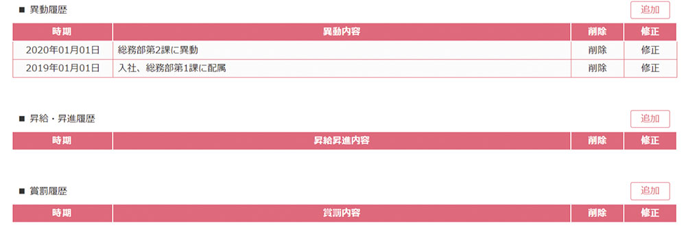 入職・異動・昇進・研修履歴など全人事情報をクラウドで一元管理